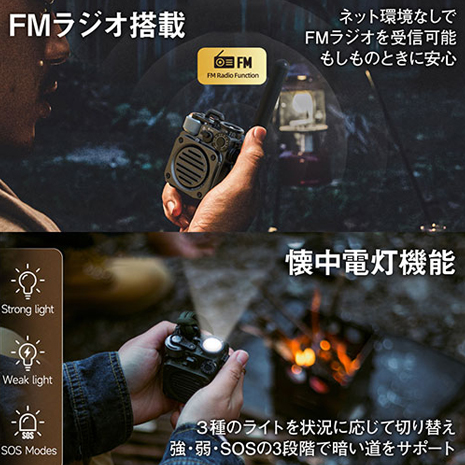 携帯圏外でも電波が届けばラジオが聴ける!アウトドアや防災用途での情報収集に重宝します。