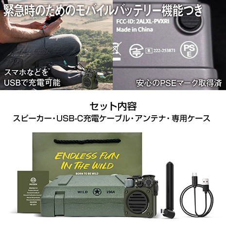 スピーカー(Wild Mini 第三世代)・USB-C充電ケーブル・アンテナ・専用ケース