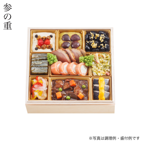 ※重箱におせち料理を盛り付け、冷凍状態でお届けします。生ものですので、お早めにお召し上がり下さい。